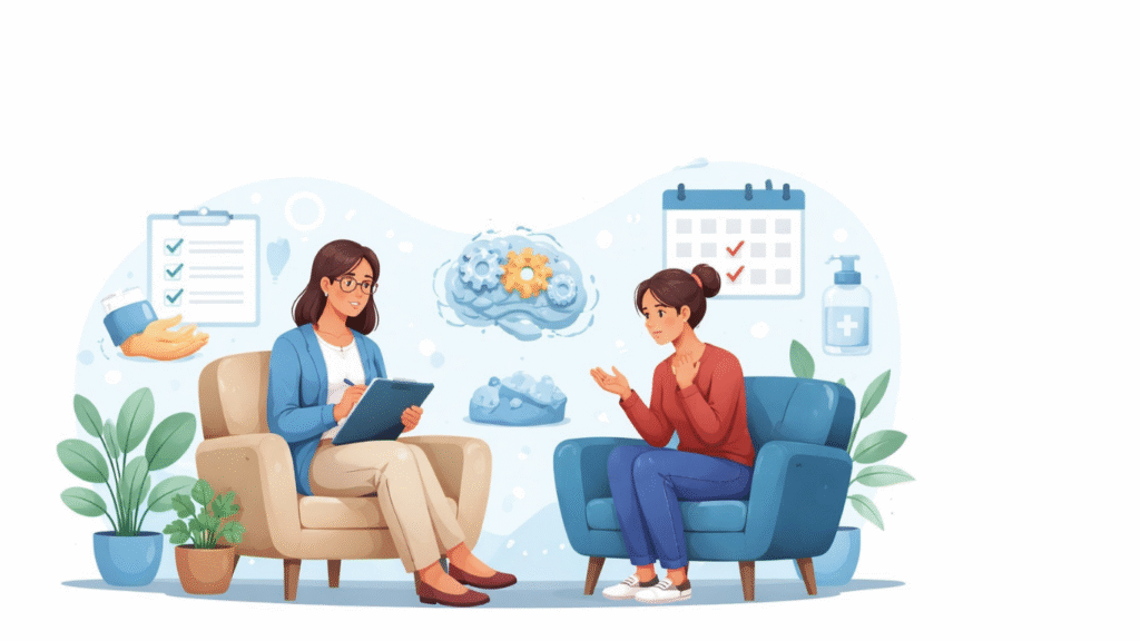 OCD treatment is grounded in exposure and response prevention and cognitive behavioral frameworks. Therapy focuses on: